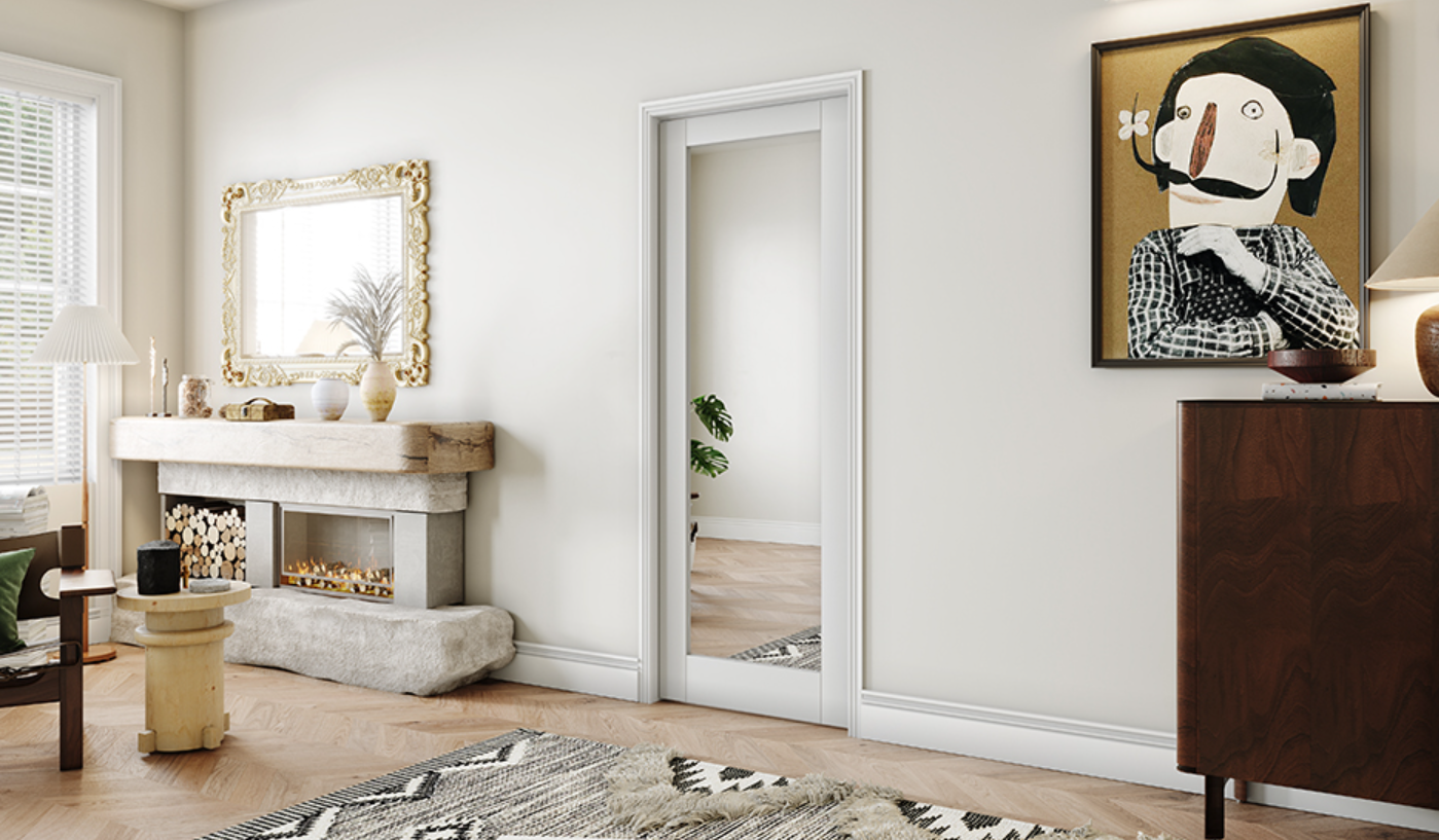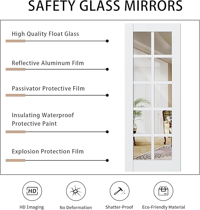 TENONER White MDF 1-Lite Mirrored Glass Interior Prehung Door for Closet, Bedroom, Pantry – Easy to Install, Enhance the light with Door Jamb and Hardware Kit
