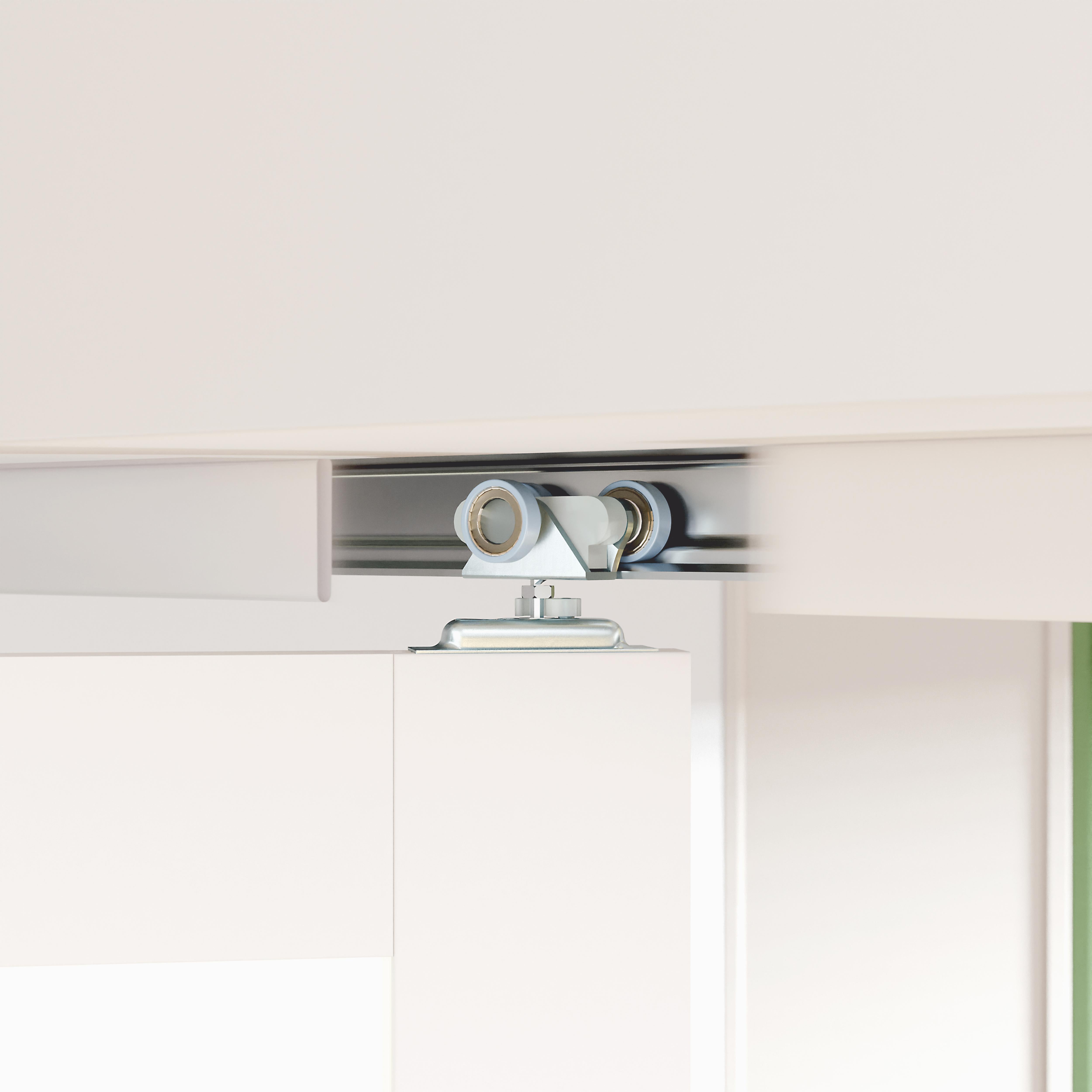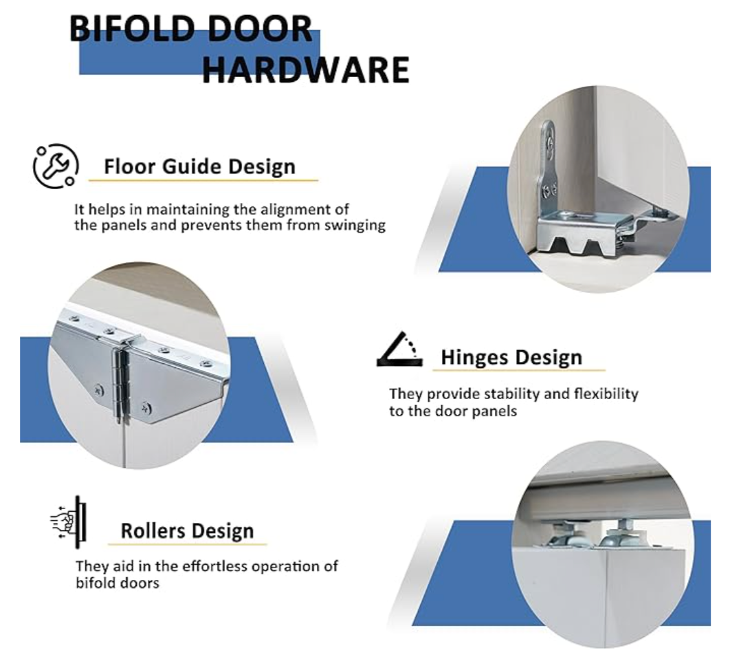 The hardware package typically includes hinges, handles, tracks, and rollers for smooth operation. Specific hardware may vary depending on the model, but necessary components for installation are included.