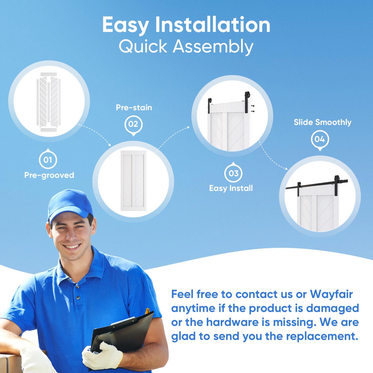 Sliding barn doors are generally easy to install. The door tracks can be mounted on the wall, eliminating the need for complex hinge installation in the door frame. Removal is also simple, making them ideal for DIY projects.Available in a variety of sizes, including 30" x 84", 36" x 84", 42" x 84", 48" x 84", 60" x 84", 72" x 84",84" x 84" , sliding barn doors are versatile and can fit different door openings, whether for space-saving needs or wide spaces, making them a practical and flexible solution for any interior.