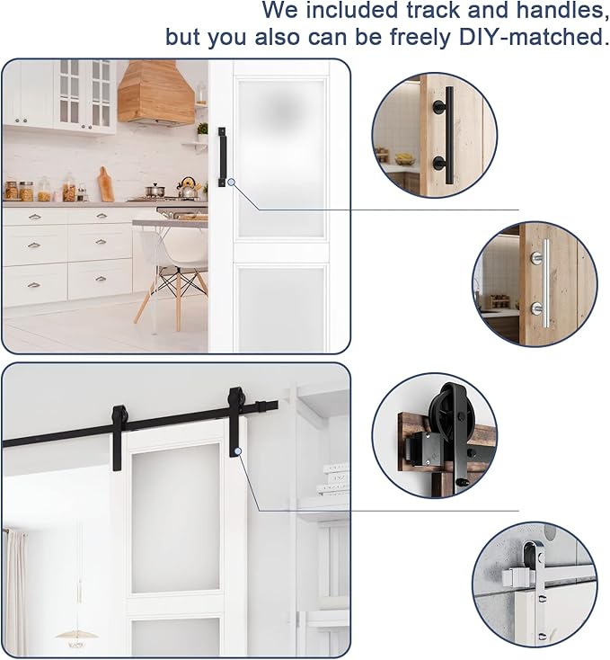 These barn doors are built with premium tracks, tested over 10,000 times for durability, ensuring smooth, effortless movement and minimizing the risk of accidents.It also allows for DIY customization, whether it's the kitchen, the bedroom, or the living room, making the home both charming and convenient.