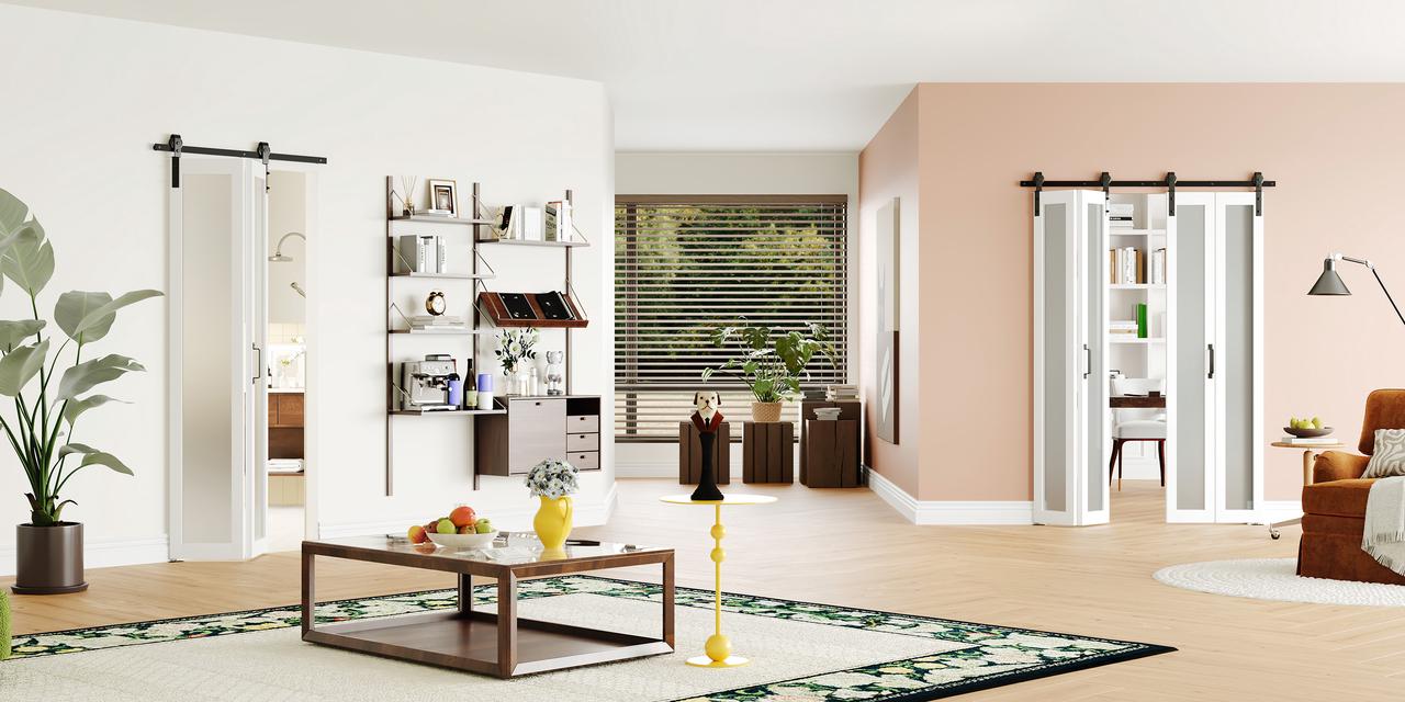 Bifold barn doors offer a range of panel options, such as frosted glass or solid panels, giving you the flexibility to choose the ideal balance of seclusion and natural light. Whether you're searching for privacy barn doors, light-blocking doors, these doors provide the versatility to suit your needs while enhancing your home's decor. Perfect for bedroom doors, closet doors, or living room doors, they create the perfect space for both comfort and style.