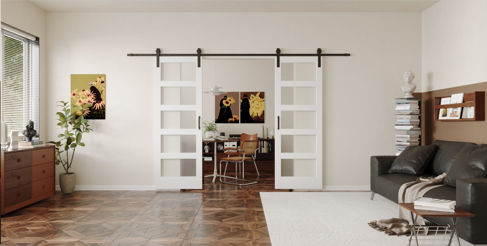 Sliding barn doors offer excellent privacy by blocking sightlines,ideal for bedrooms, bathrooms, or any space requiring seclusion. Some sliding barn doors with frosted glass allow natural light to flow between rooms while maintaining privacy. This is perfect for spaces like living rooms and dining areas that need separation but also benefit from light.