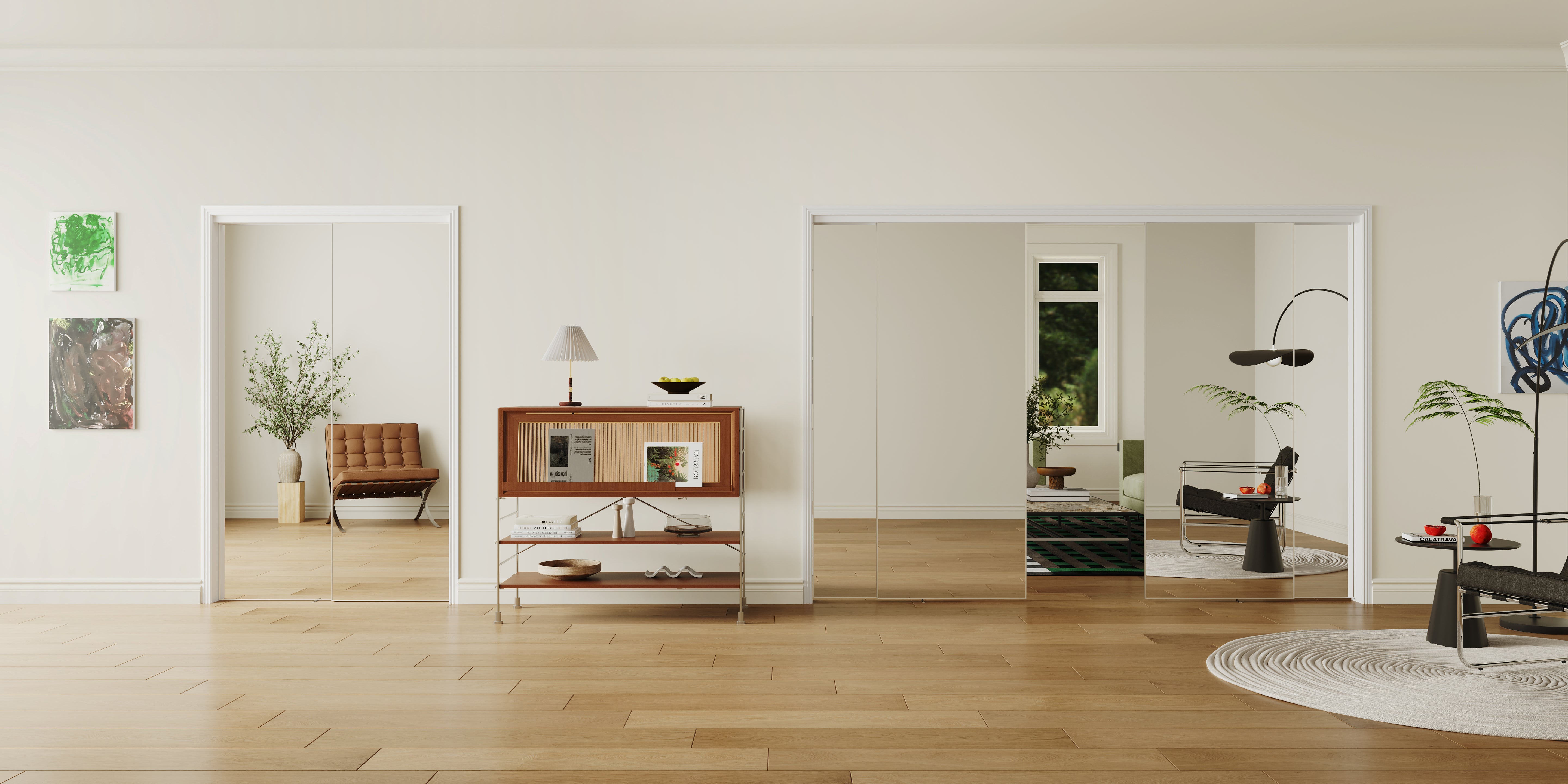 The high-quality mirrored doors have passed the CARB environmental protection test, offering superior reflectivity, enhanced privacy, and durability, making them a perfect blend of practicality and elegance.